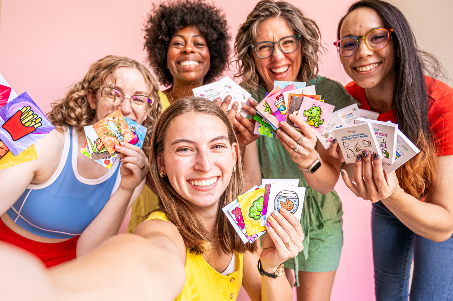 Traditional adult coloring books have large, detailed pages that can cause decision fatigue and take hours to finish. Ours have simple, easy illustrations that take just a few moments to color!