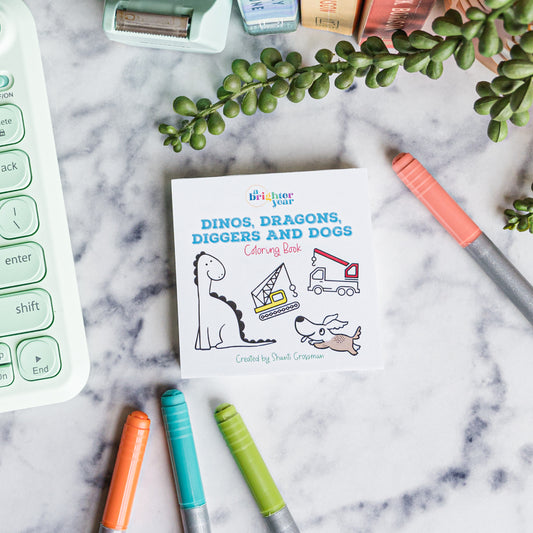 Dinos, Dragons, Diggers, and Dogs Mini Coloring Book