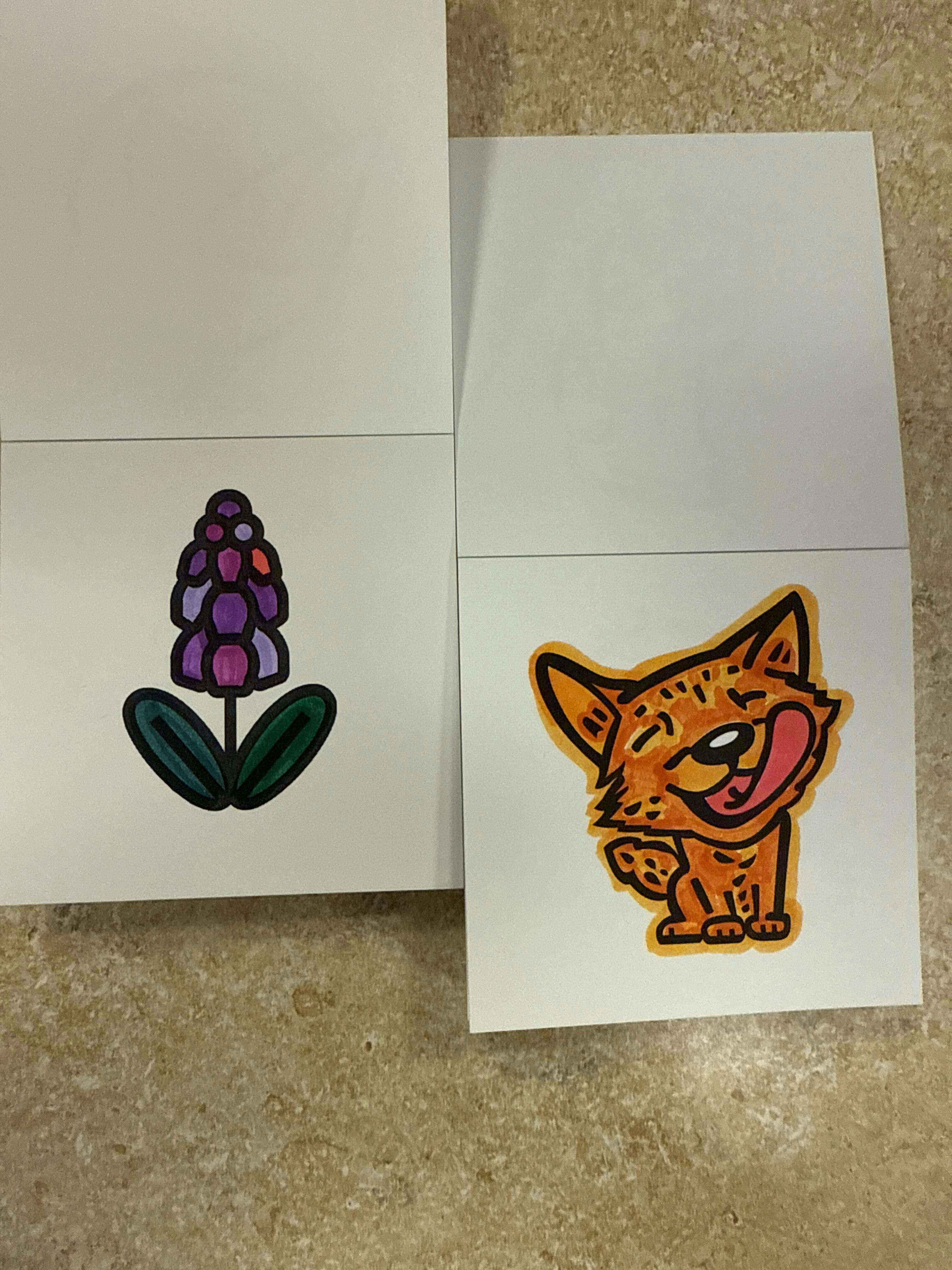 A fun concept with adorable little pictures. I’ve been giving them to friends and enjoying using different pens and markers to do my own coloring.