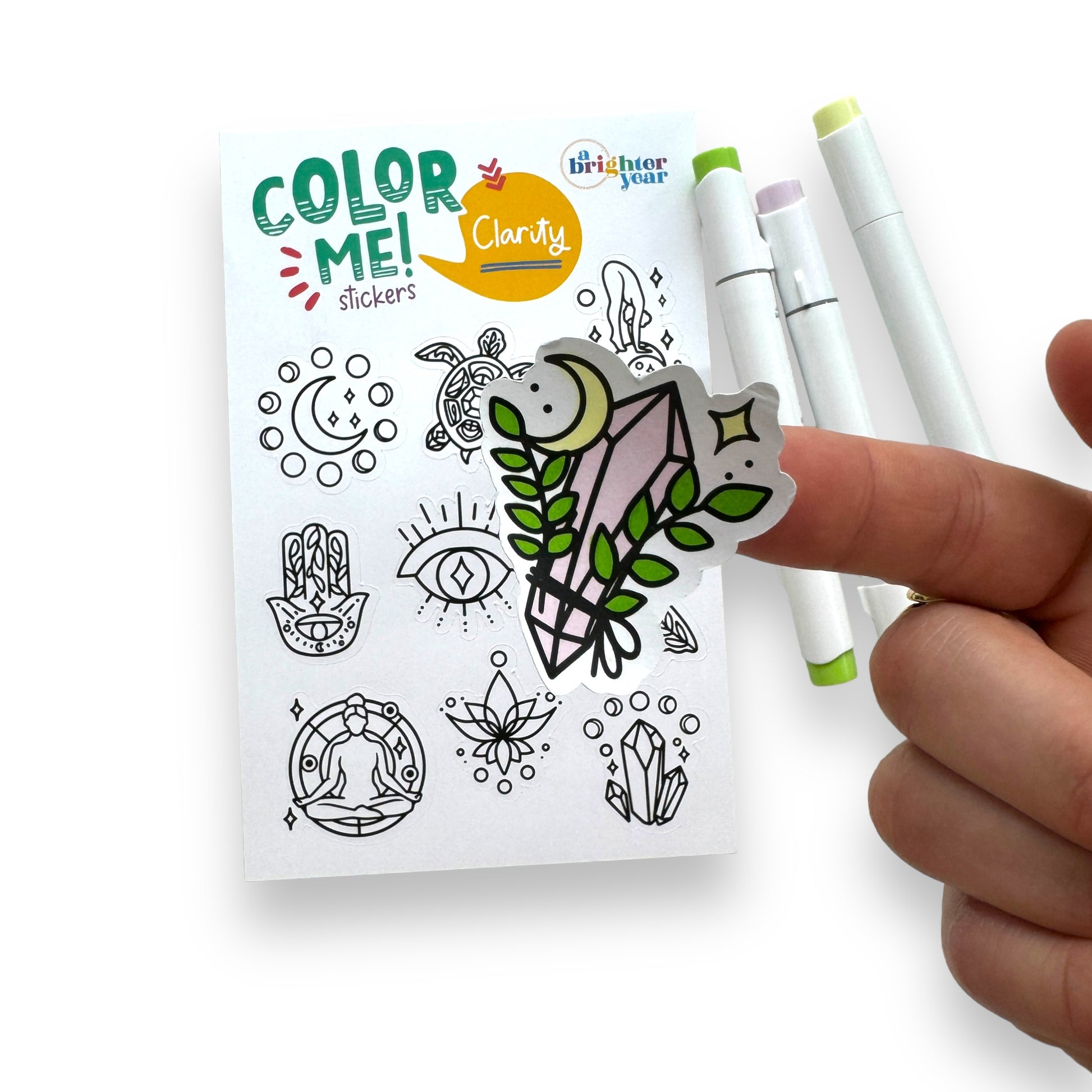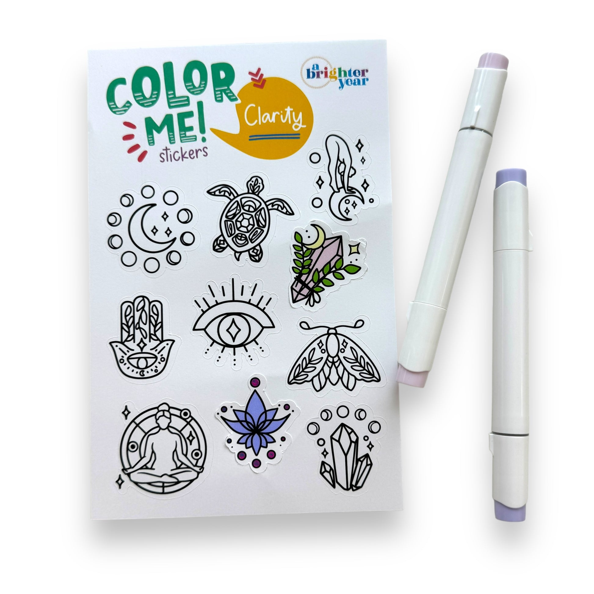 Use your creativity to get centered with these super cute Color-Your-'Ohm' Clarity stickers!