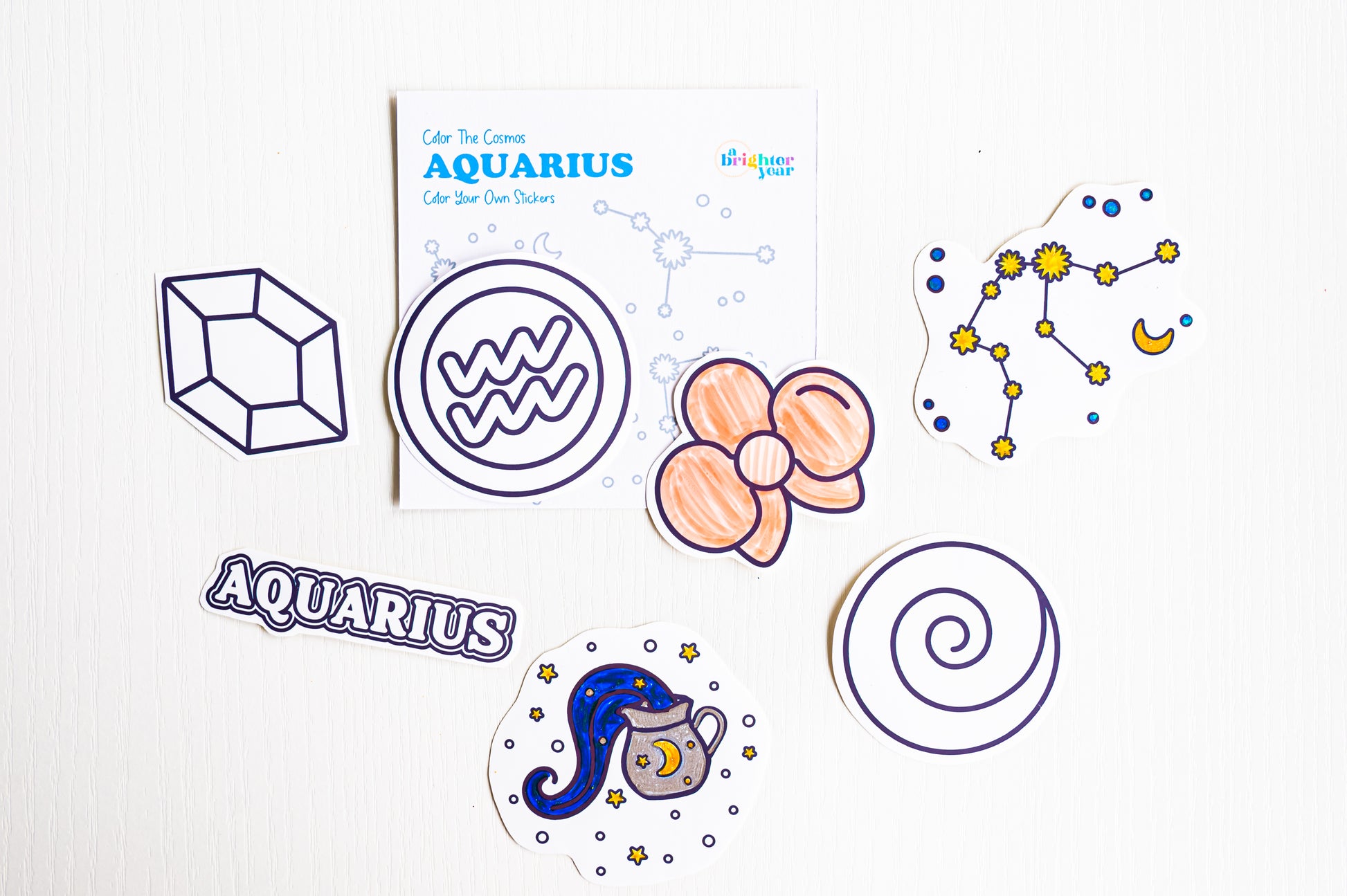 Aquarians are artistic, independent, and clever! These color-your-own stickers provide a creative opportunity add little artistic & mystic details to your surroundings.