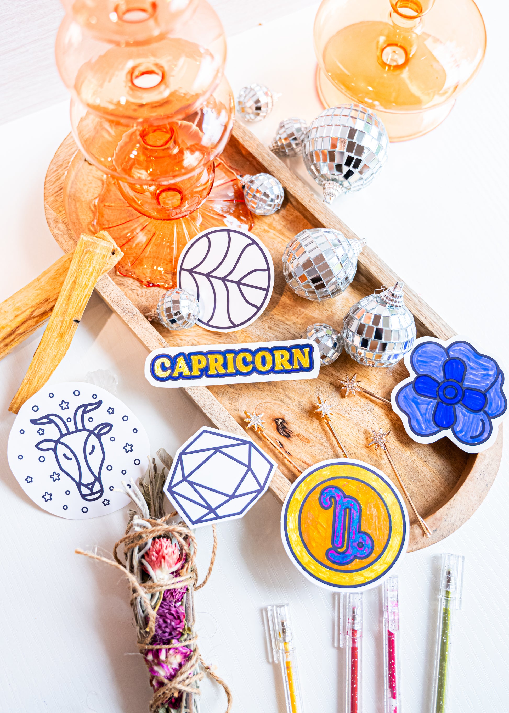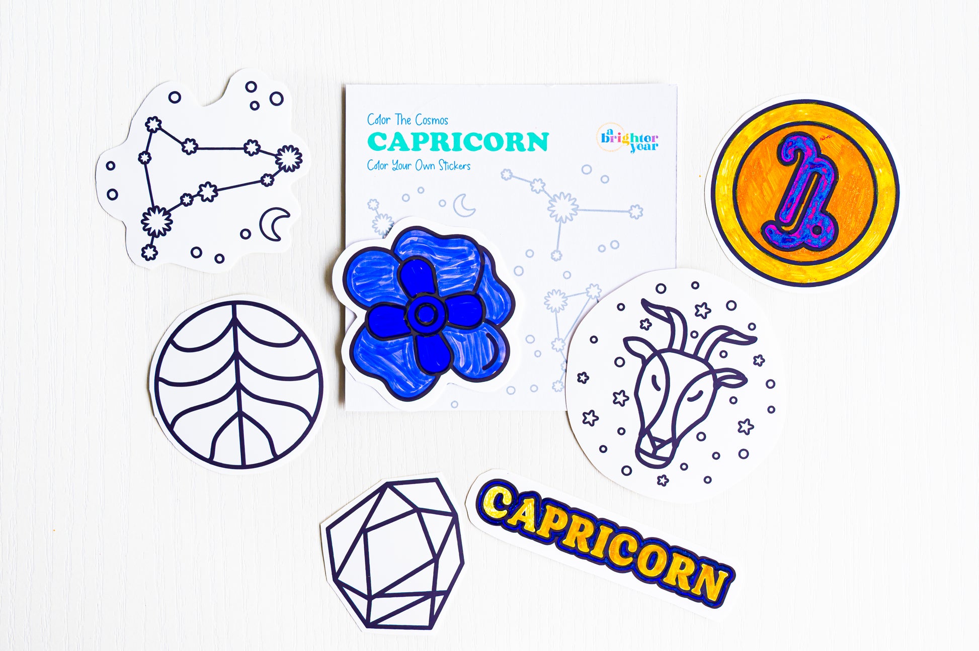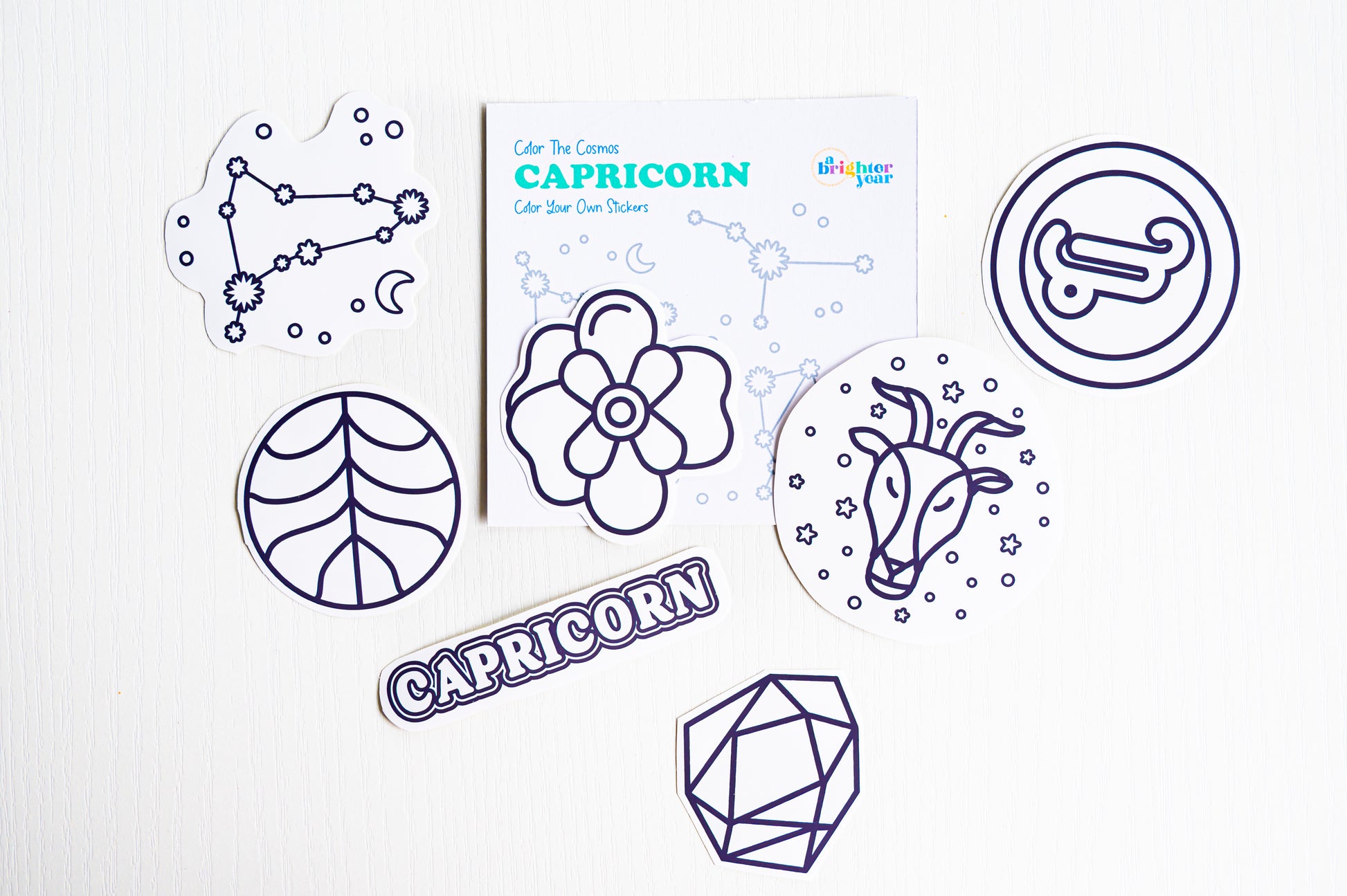 Capricorns are honest, ambitious, and hardworking! These color-your-own stickers provide a creative opportunity add little artistic & mystic details to your surroundings.
