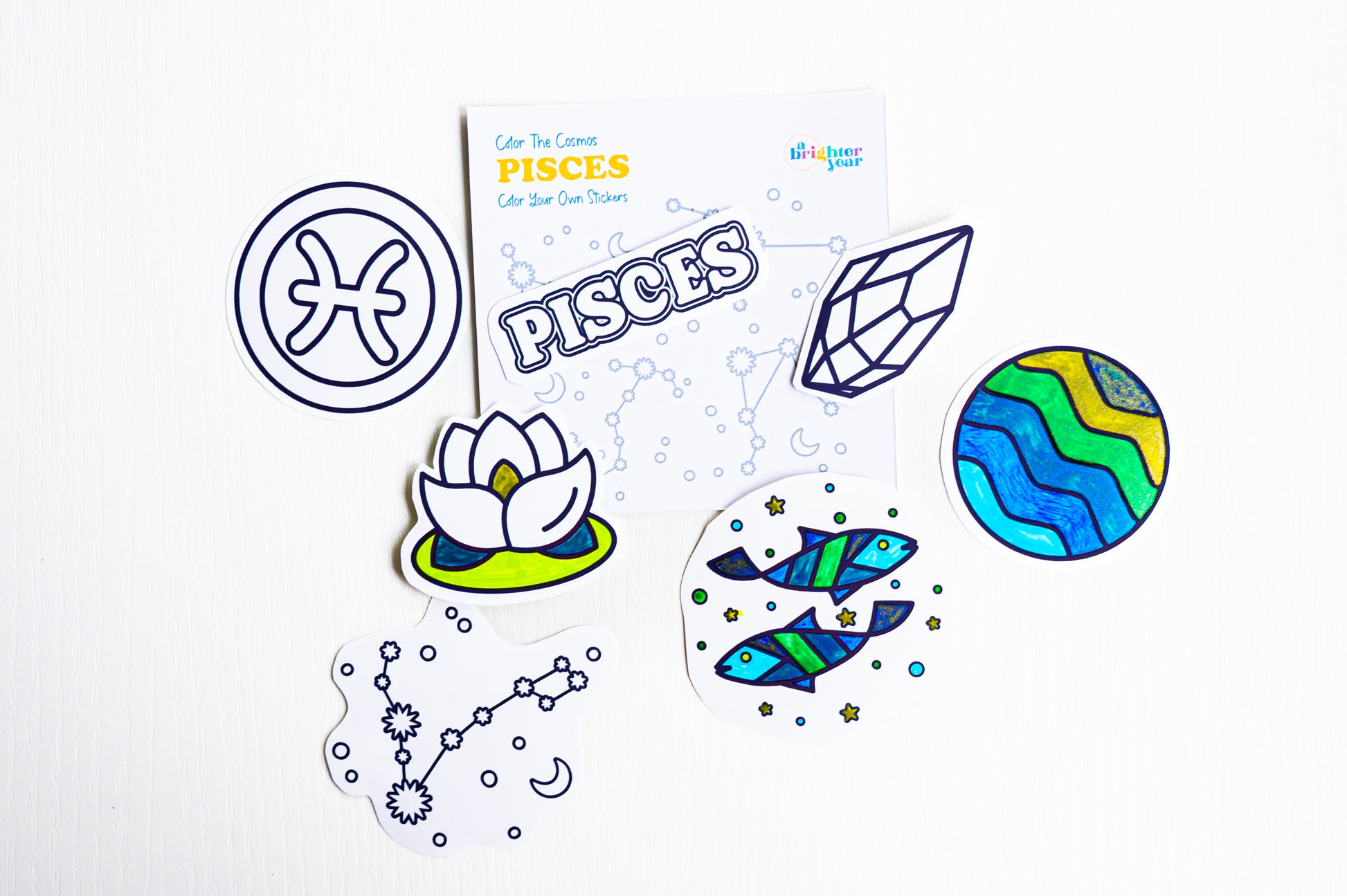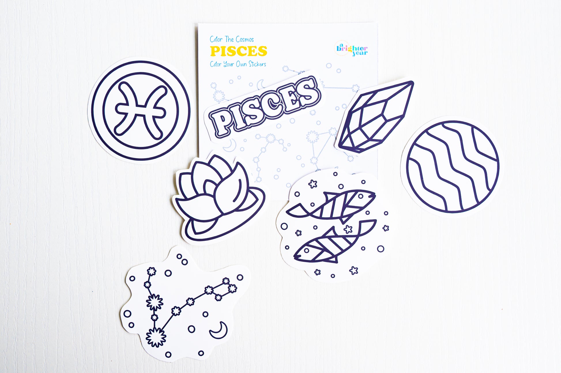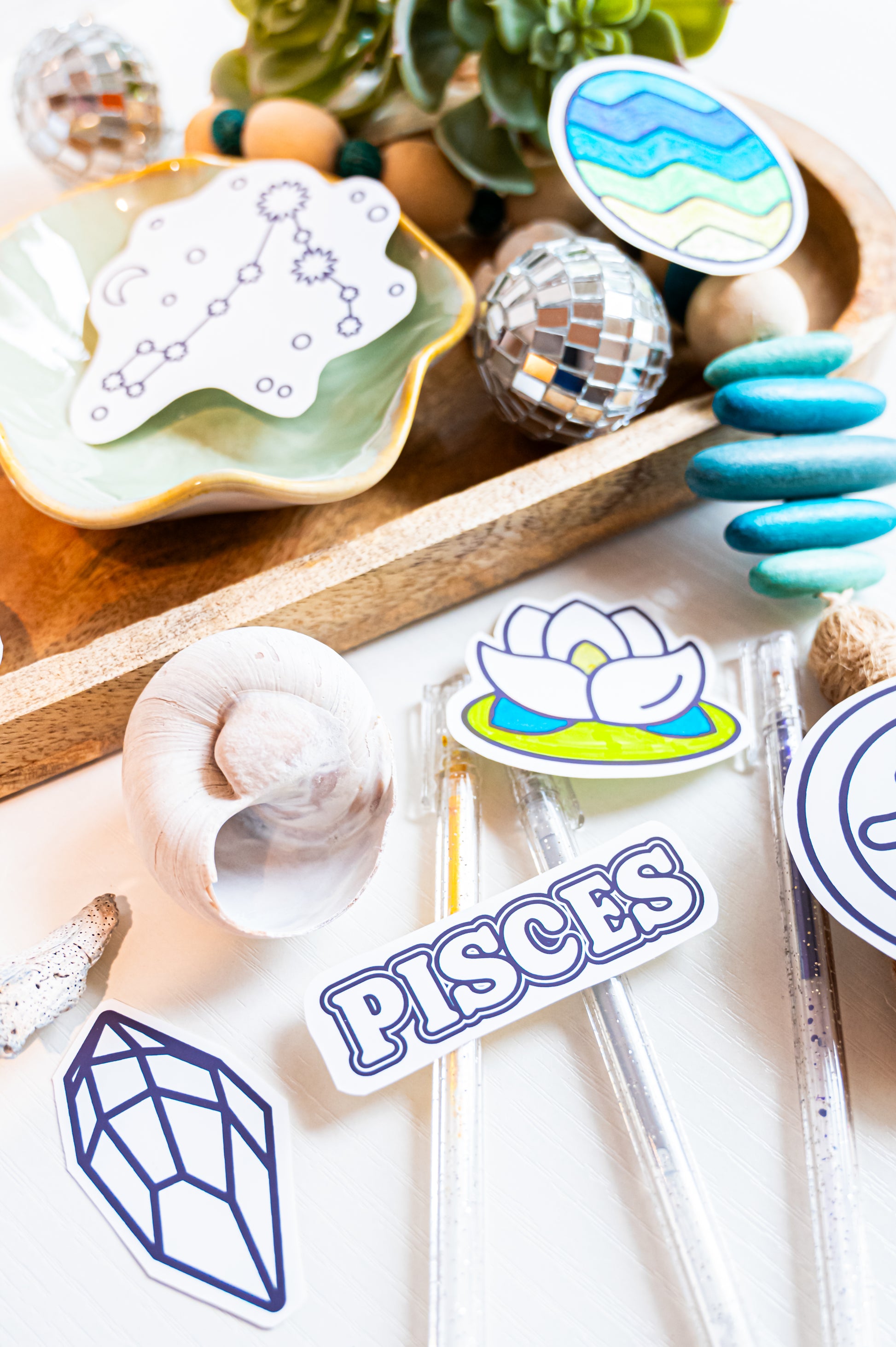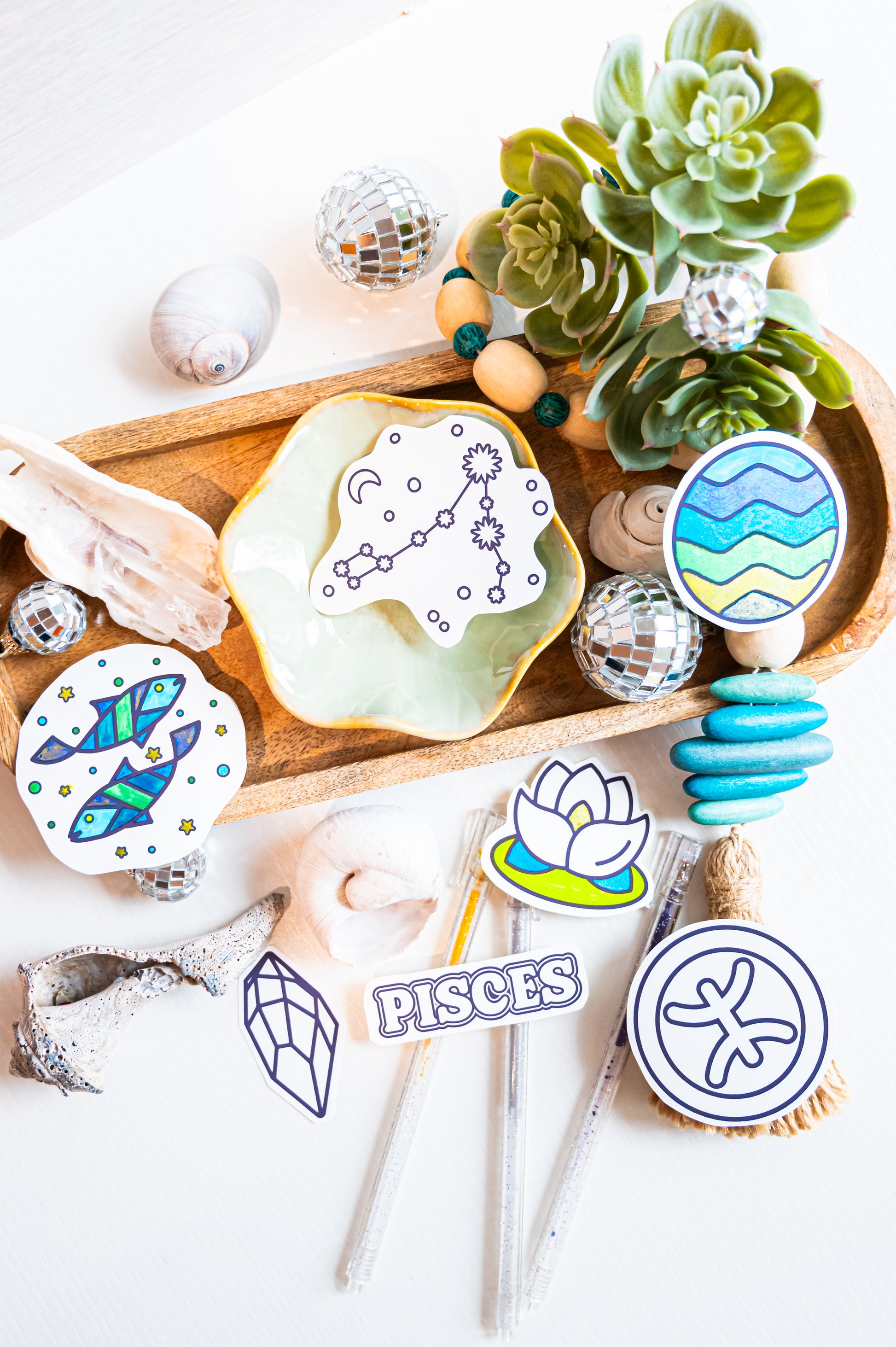 Pisces are artistic, compassionate, and generous! These color-your-own stickers provide a creative opportunity add little artistic & mystic details to your surroundings.