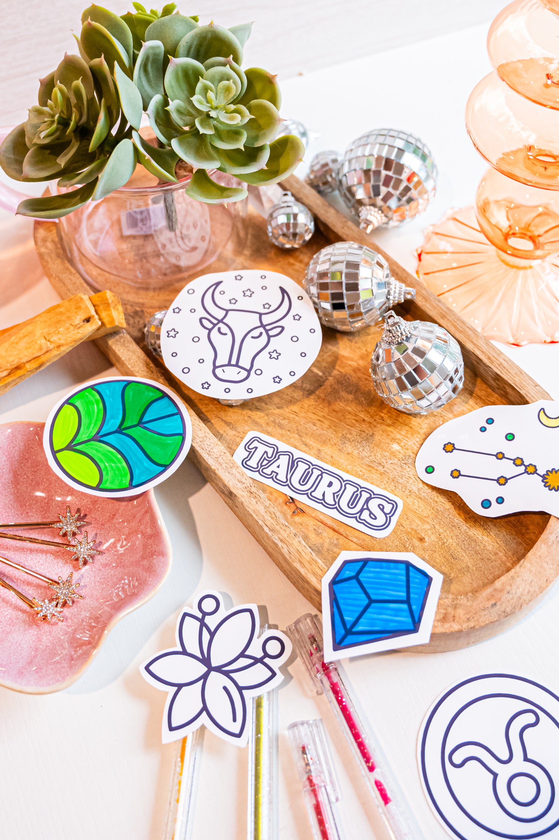 Taureans are artistic, grounded, and hardworking! These color-your-own stickers provide a creative opportunity add little artistic & mystic details to your surroundings.