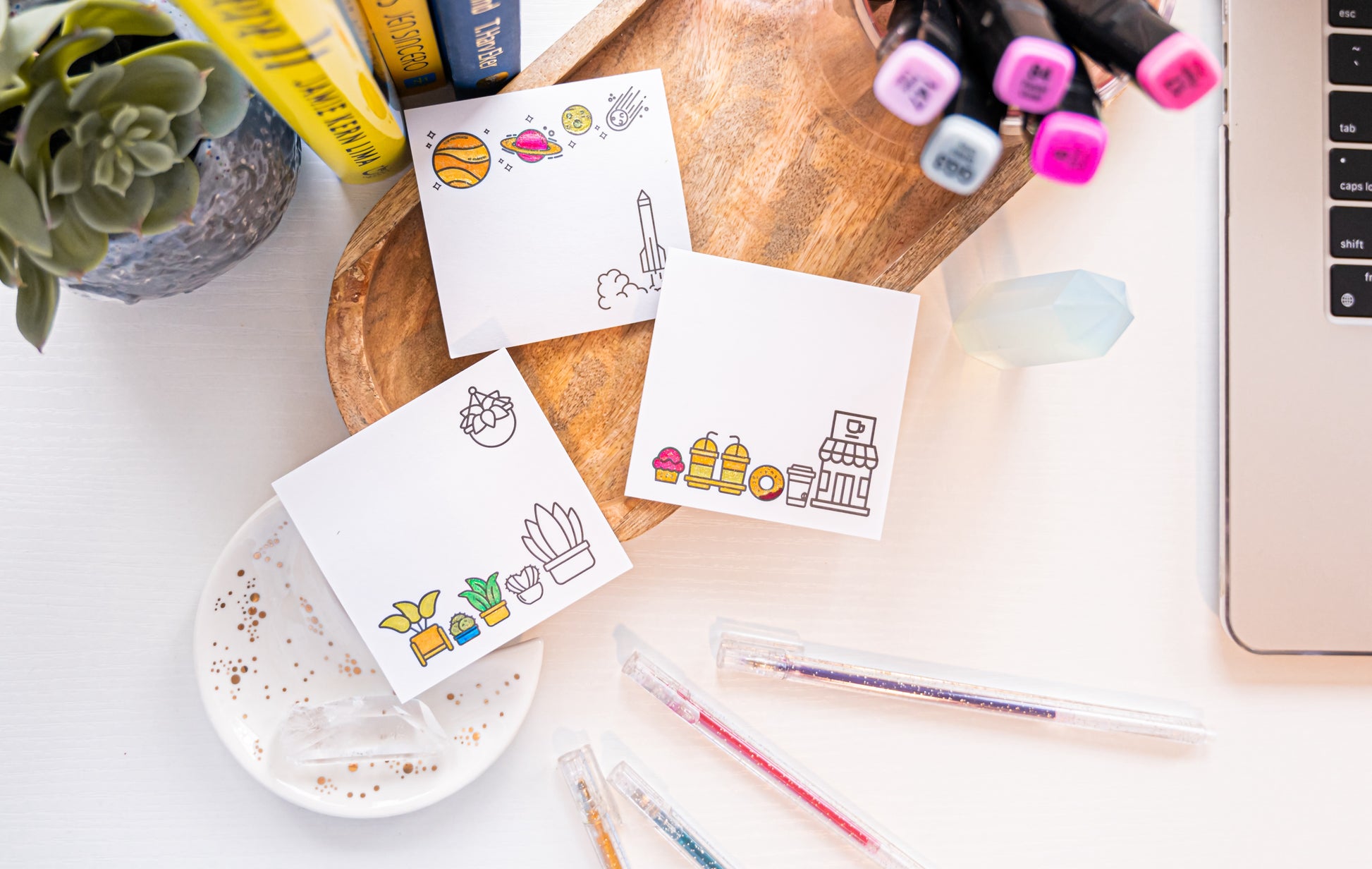 Brighten up your desk or share them with a coworker—these aren’t just sticky notes, they’re a mini creative outlet!