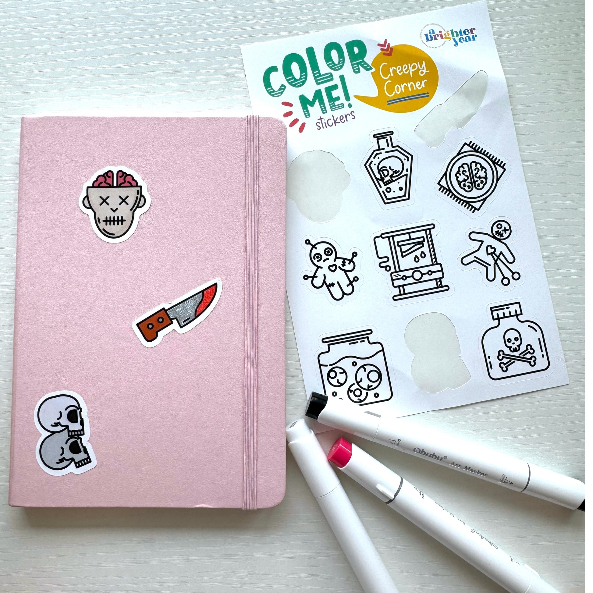 Made from high-quality, durable material, our color-your-own stickers are perfect for kids and adults alike who love to express themselves. Whether you’re decorating your notebooks, personalizing your planner, or adding a bit of "BOO!" to gift wraps, these customizable stickers will make every project pop!