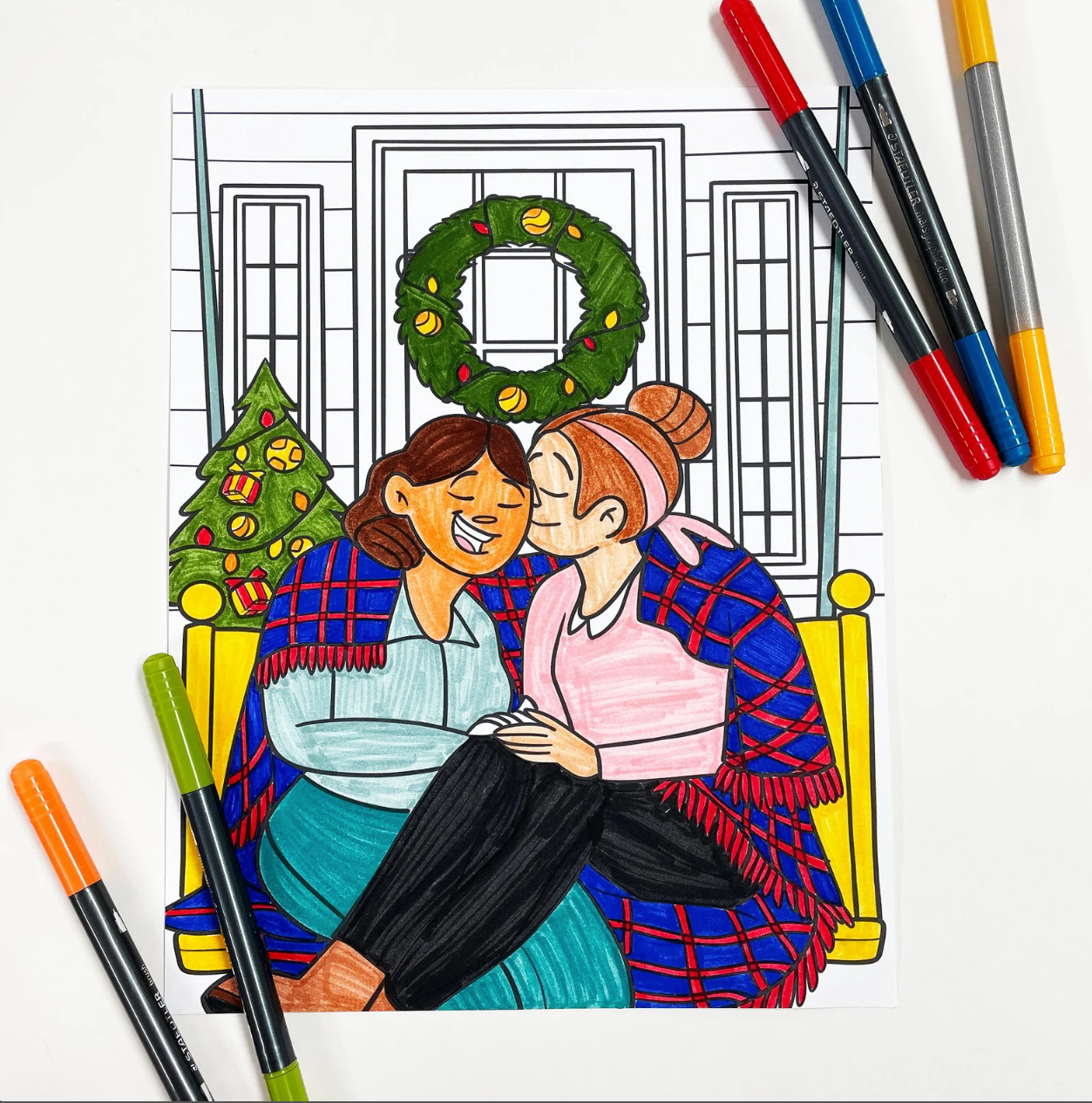 LGBTQIA+ Lesbian Christmas Holiday Digital Download Coloring Page