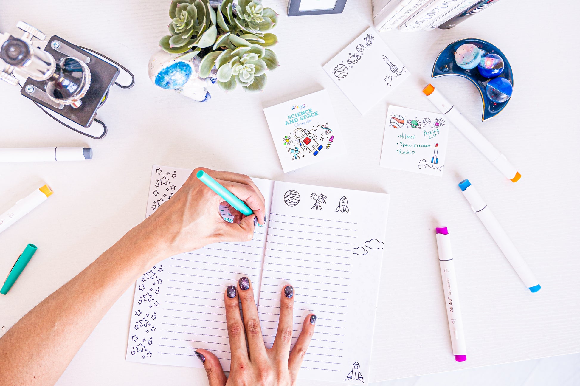 Our Space & Science Mega Bundle comes in peace to give you more reasons to color at work! Bespeckled throughout in coloring cuteness modeled after astronomy, chemistry, and biology, this mega bundle includes: