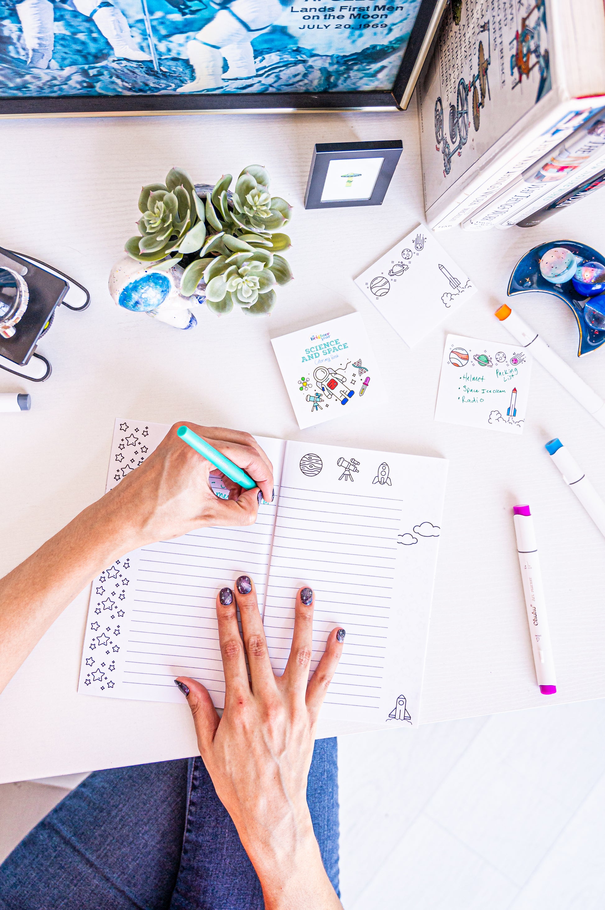 Fun & functional for home & office, give your mind a little space by taking mini coloring breaks throughout the day!