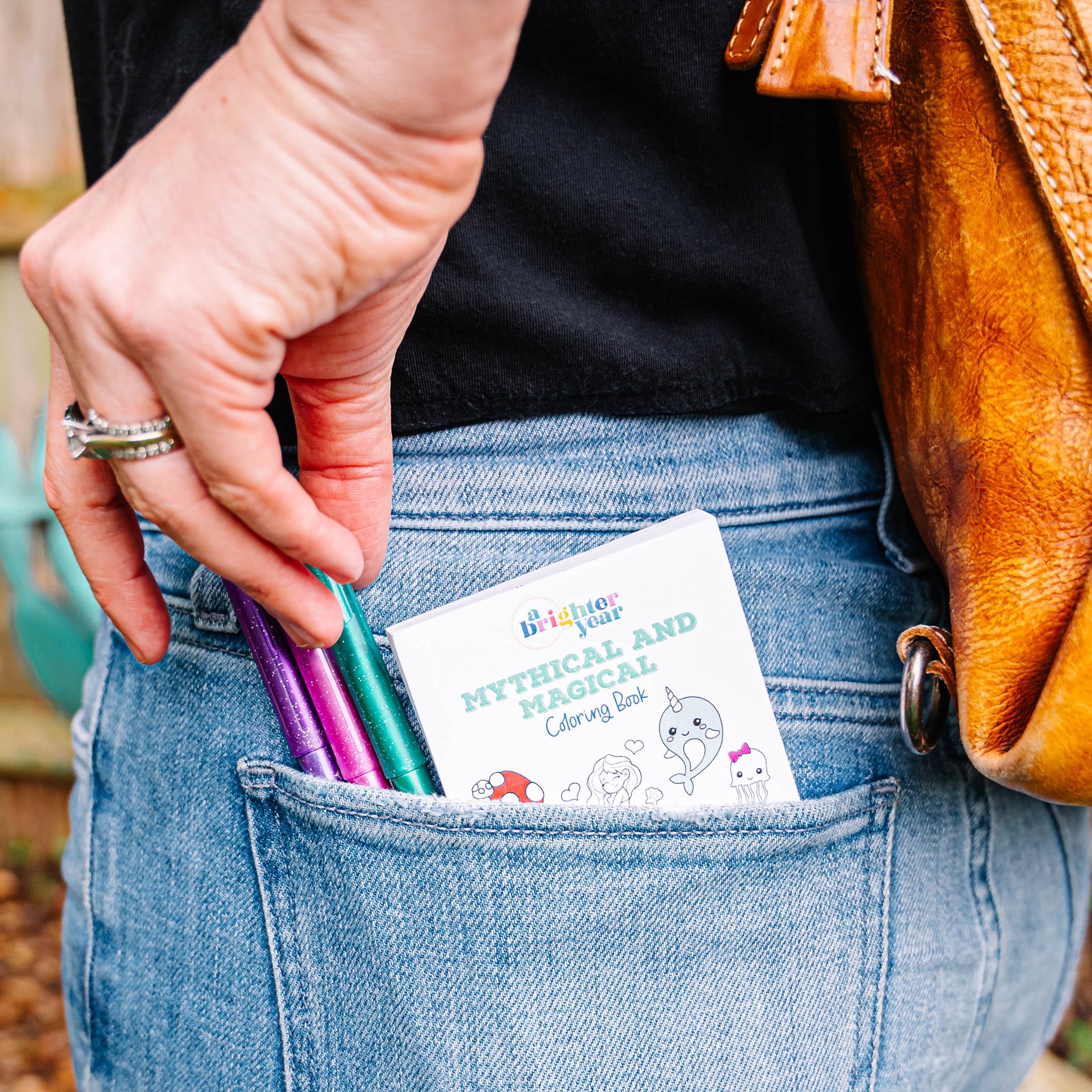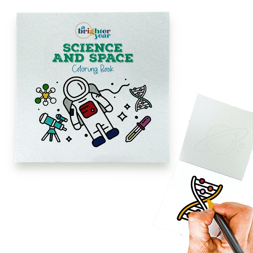 Our NEW Space & Science Coloring Book may be small (3x3 inch), but you'll still feel it's gravitational pull on your creativity! Filled with 50 adorable Space & Science themed pages that take only 3-5 minutes to complete, these satisfying mini coloring moments will leave you feeling relaxed, refreshed, and rejuvenated. Featuring space men, stardust, microscopes & more, give your brain chemistry a little space from the hustle bustle, and unwind with a daily dose of zen.